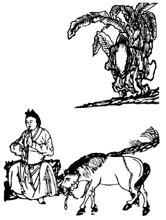(牧童严中坐,马在松下立。樵夫向前问,牧童总不知。)