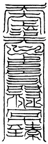 诸造驱邪院印,方一寸八分,以金玉为之,篆以天文。雷霹木造者听。召六丁六甲使者,结界守护。置讫,以红朱傅印面上,先闻上界,应造法中印记准此。次同所授官花押字样,关东岳,照会讫,方得使用。