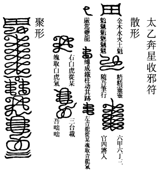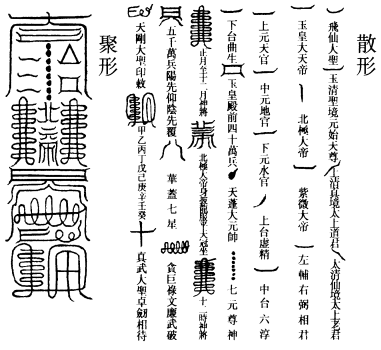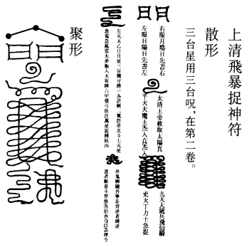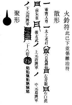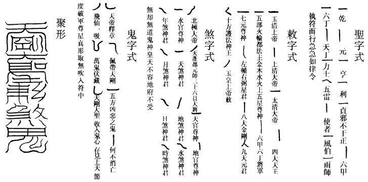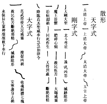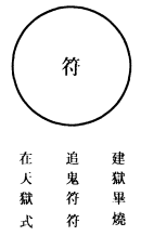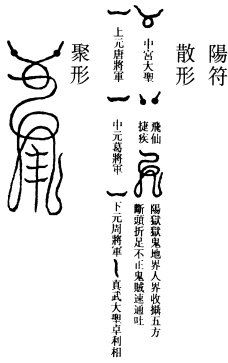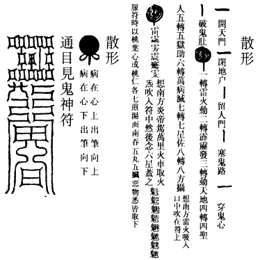 一治癫邪鬼祟,先取本人诣实文状,据其事理,合用申行去处。先札付本家司命五道土地,次牒所属州县城隍,或奏本部兵将收捉,或用奏上天,建立天狱,收捉鬼祟。凡申发文字及差兵将,先用赏设讫,方给帖牒关引等付之案,令奉行,次给符水与病人吞佩。蒙恩之后,再用赏兵,及修设斋醮谢天,以答灵贶。其斋醮法信,量贫富丰俭为之。如委实家贫,不能办者,师为代备之。若富者蒙恩之后,鄙吝财物,不修报谢,有昧兵将之功,即反招殃咎,难以禳解。