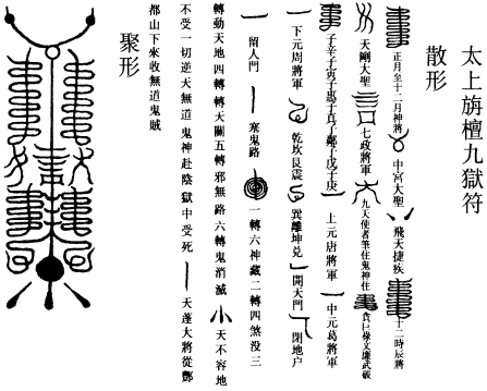 九狱主九人,本院有囚禁鬼神,系勘之事,各率神兵,坚固紧切,不得透漏,现露踪迹声色形状,明使报应,解狱交付主者。各要执持器杖枷械,絷缚鞭扑之具。