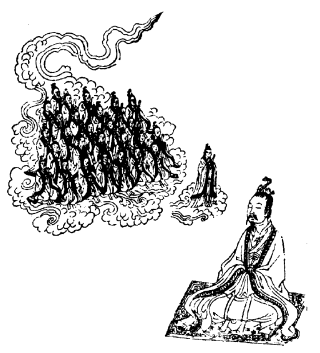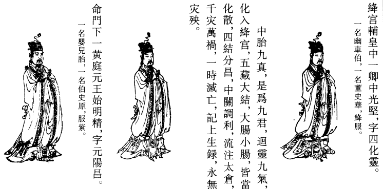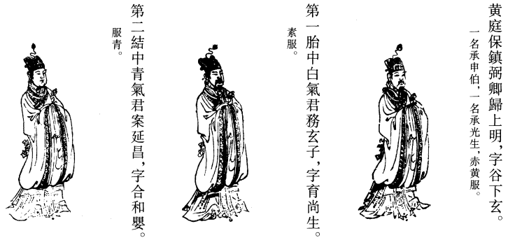 礼读再过,都毕,当和心下气,勿令音辍而蹇也。又闭目存呼太极紫房天皇大帝君逢凌梵,字履昌灵,一名七灵,一名神丈人。如此祝之,三又存三九结解真君,东方青帝雕梁际等,下诣玄母叔火王等二十七人,同著朱衣黄巾。黄巾者,似远游冠之状也。貌如婴儿,有无长短。若兆不能谙识一二存念者,可入室按文施行之。
