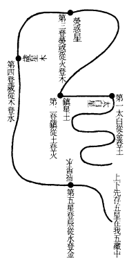 太上真人步五星之道,以致五星降室,闭气上罡,当先呼五星君皇夫人名字,毕乃越罡蹈星。谓始上罡便顿住呼名字,呼名字毕,乃越罡蹈星耳。若每至星上,得复重心呼所至星处之名字,益其佳也。若其烦重难常,但可按旧而行耳。昔郁沙公、北里子生、长陵老人,皆按此法而得升天,不以烦难为辞也。所谓治生者矣。商贩之汲汲,岂惮崄难哉,所期唯钱货而已耳。若使求道者常如贾贩之用心,亦有何不得仙耶。但惜初学者皆言专尽勤至,而后辄懈纵,有似车之将败而百节解落,又似负重之牛造远足蹇。末学者之所患,而为得者之所笑,皆如此辈事耳。苟能心研内镜者,是为感发乎神,将有灵人发子之蒙,携辰景之舆矣。至五星布图,常向南也,以太白位在西,岁星位在东,按而施之。所以尔者,五星隐伏,纵横无常。不如北斗列象,常在故一,以定位於五方,不得随星之所在也。