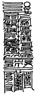 此太极帝君真符,上元六符,中元五符,下元五符。太上召三一守形之法,立春、春分、立夏、夏至、立秋、秋分、立冬、冬至始日,朱书,平旦向王,服一符,以次十六日,竟服十六符也。后节复如先,从上起服也。服符悉向王再拜,咒曰: