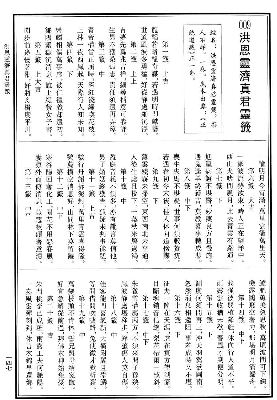 当前位置: 中华道藏 > 洪恩灵济真君灵签 原书图片版