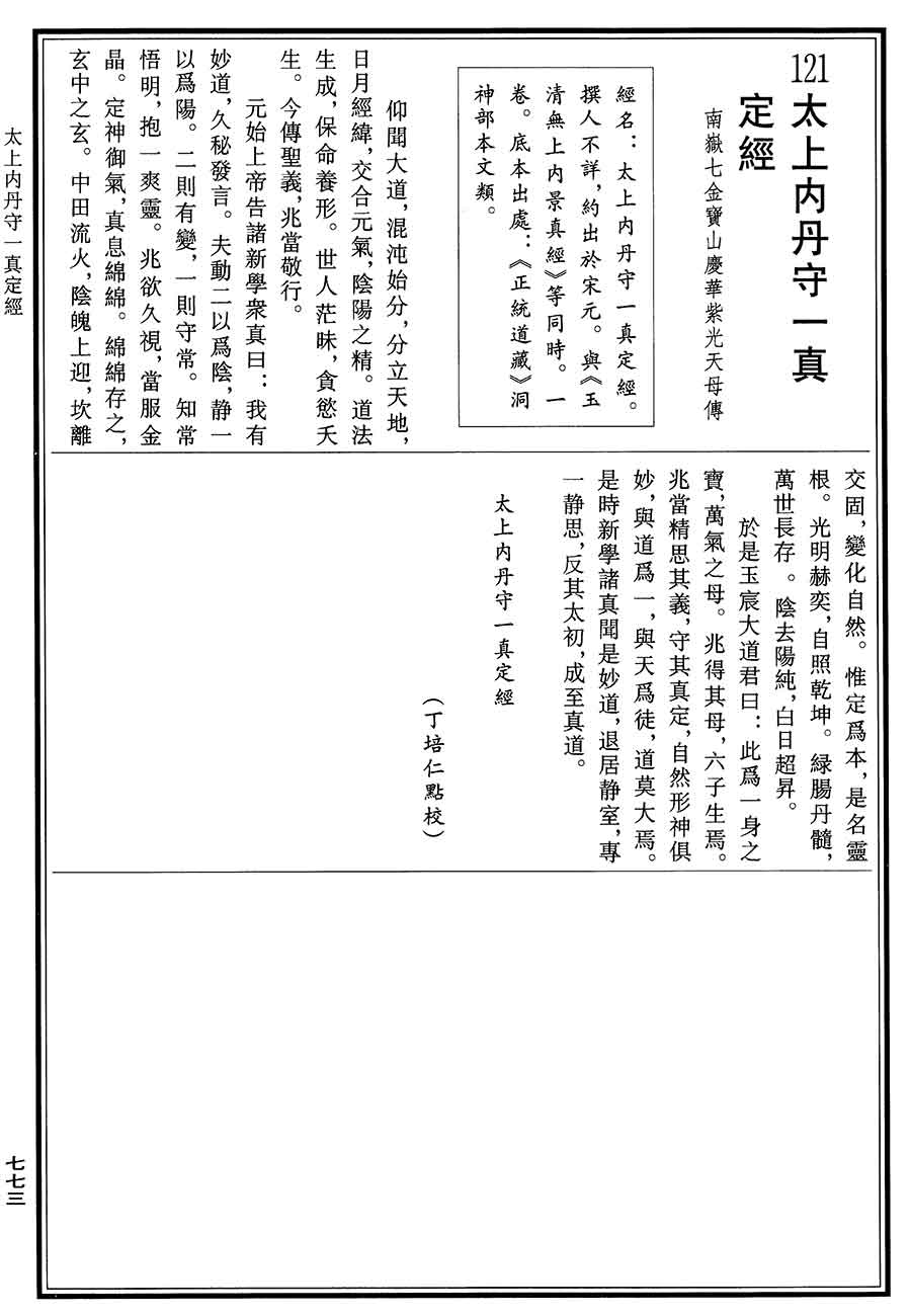 当前位置: 中华道藏 > 太上内丹守一真定经 原书图片版