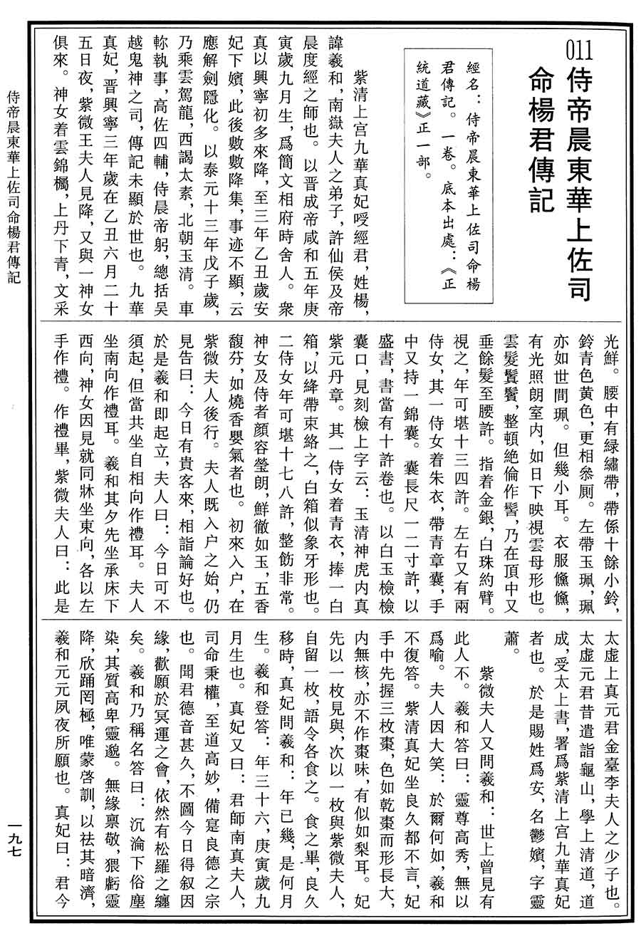 > 侍帝晨东华上佐司命杨君传记 原书图片版