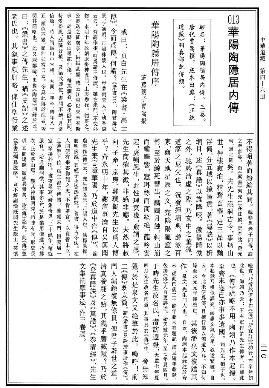 当前位置: 中华道藏 > 华阳陶隐居内传 原书图片版